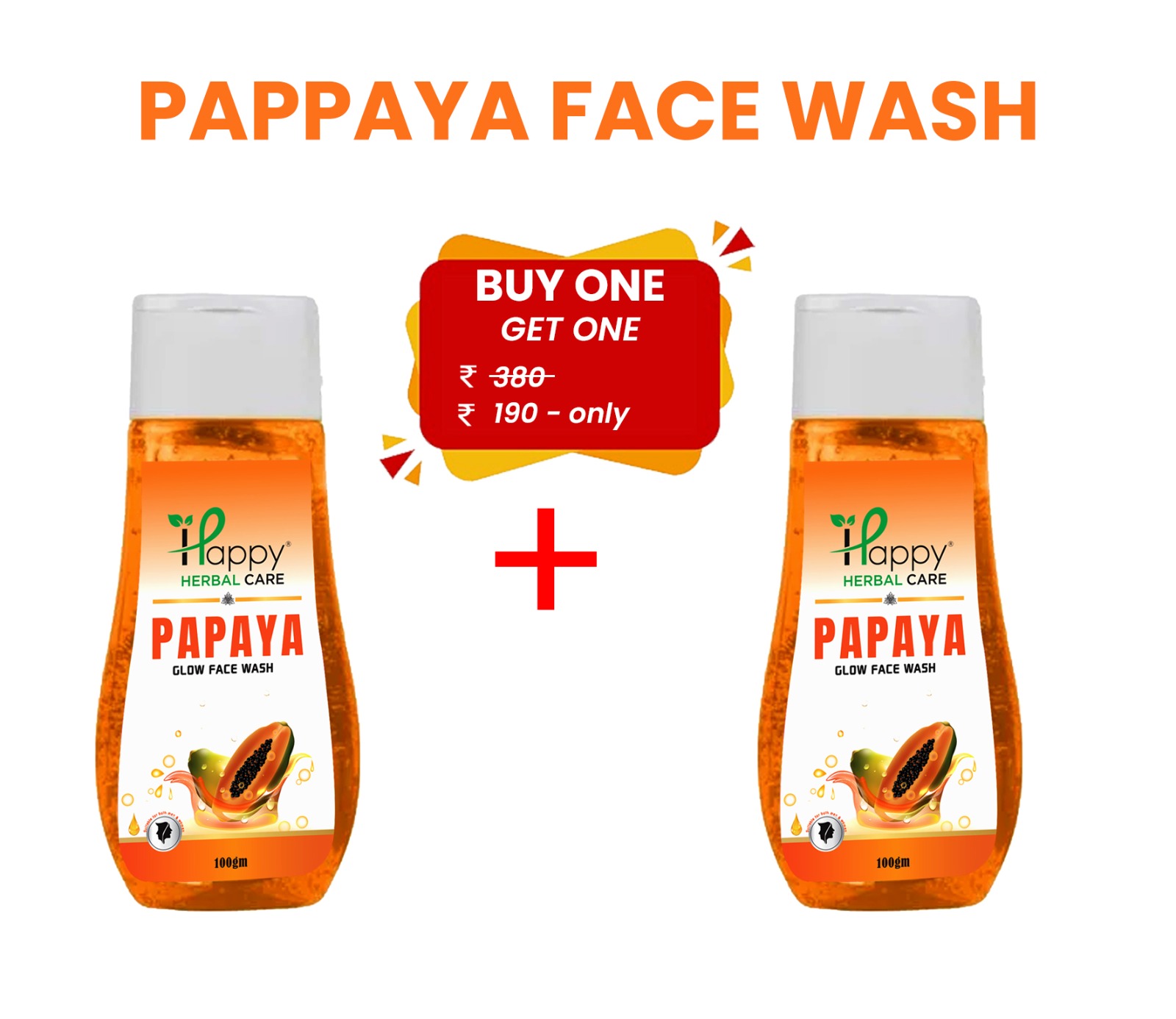 Buy 1 Get 1 Free Papaya Face Wash Happy Herbal Care Papaya Face Wash is enriched with the natural goodness of papaya extract that helps gently cleanse the skin and remove dirt, oil, and impurities. Papaya is well known for its natural skin-brightening properties, helping to improve the appearance of dull and tired skin. This refreshing herbal face wash helps maintain clear, soft, and healthy-looking skin while giving a natural glow. Its gentle formula is suitable for daily skincare and keeps your face feeling fresh and smooth after every wash. Now available with a special Buy One Get One Free offer, making it the perfect time to enjoy natural skincare
